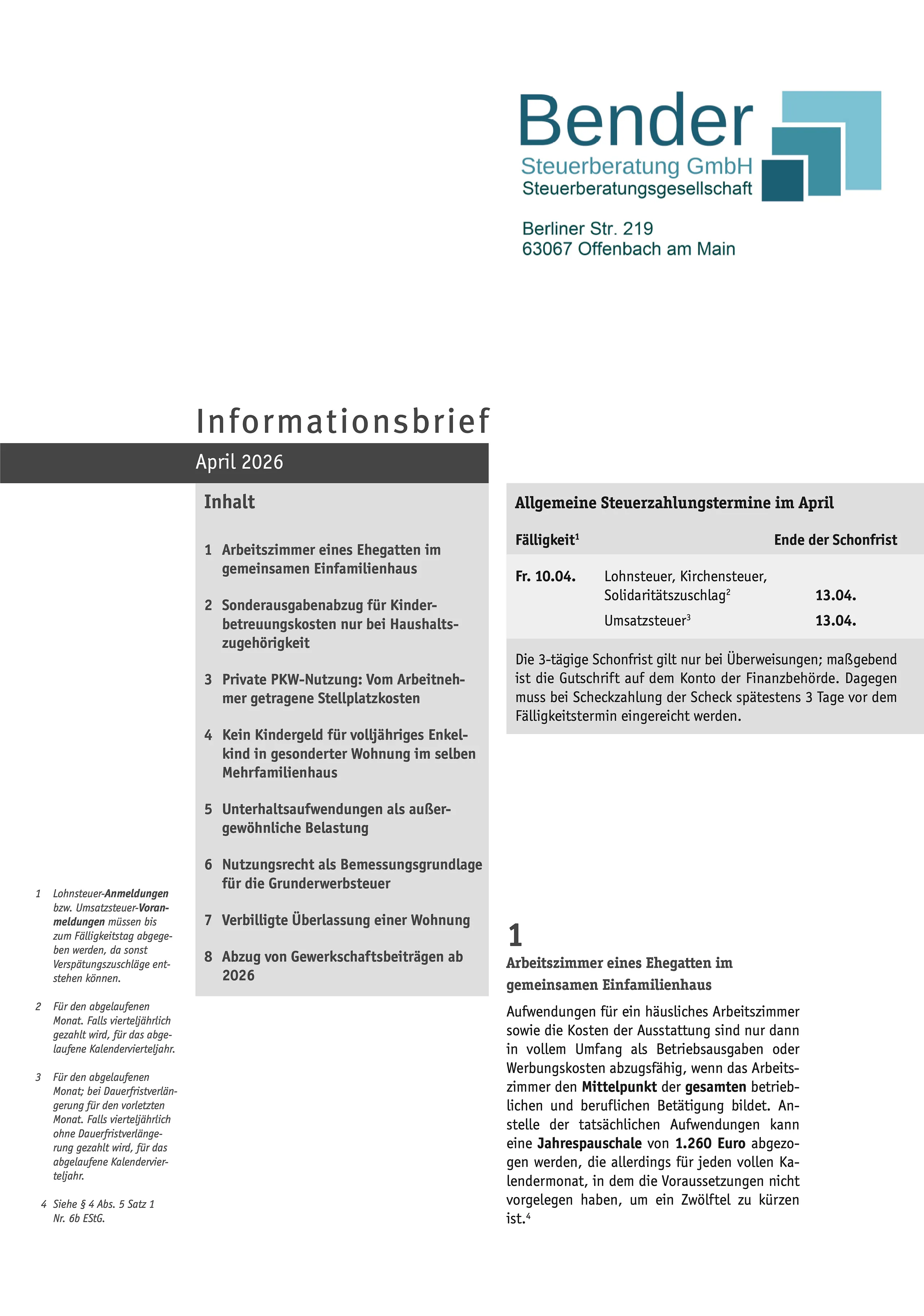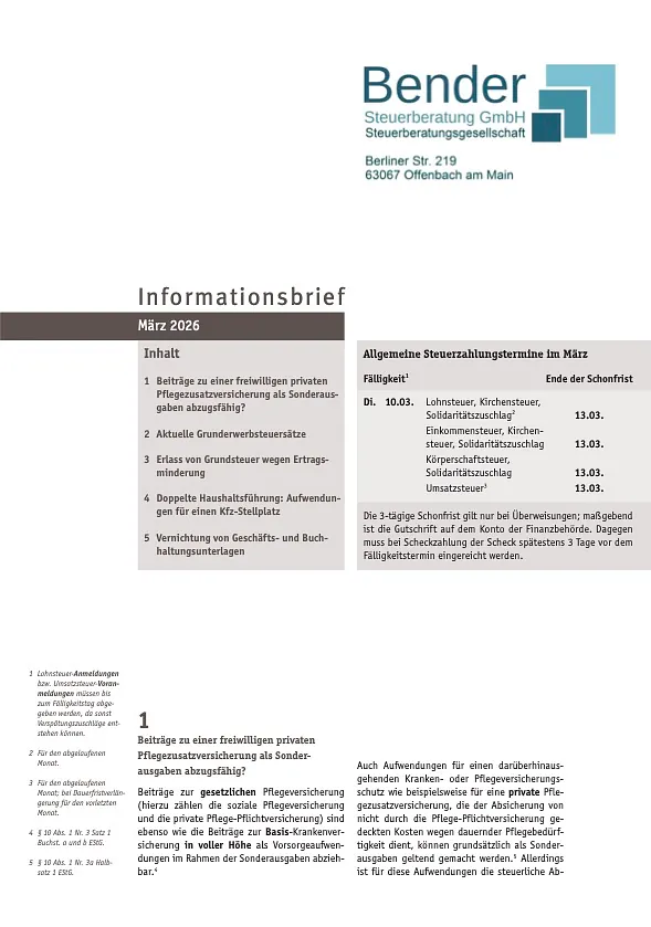 Kontaktieren Sie uns! 069 348737710 oder info@bender-stbg.de